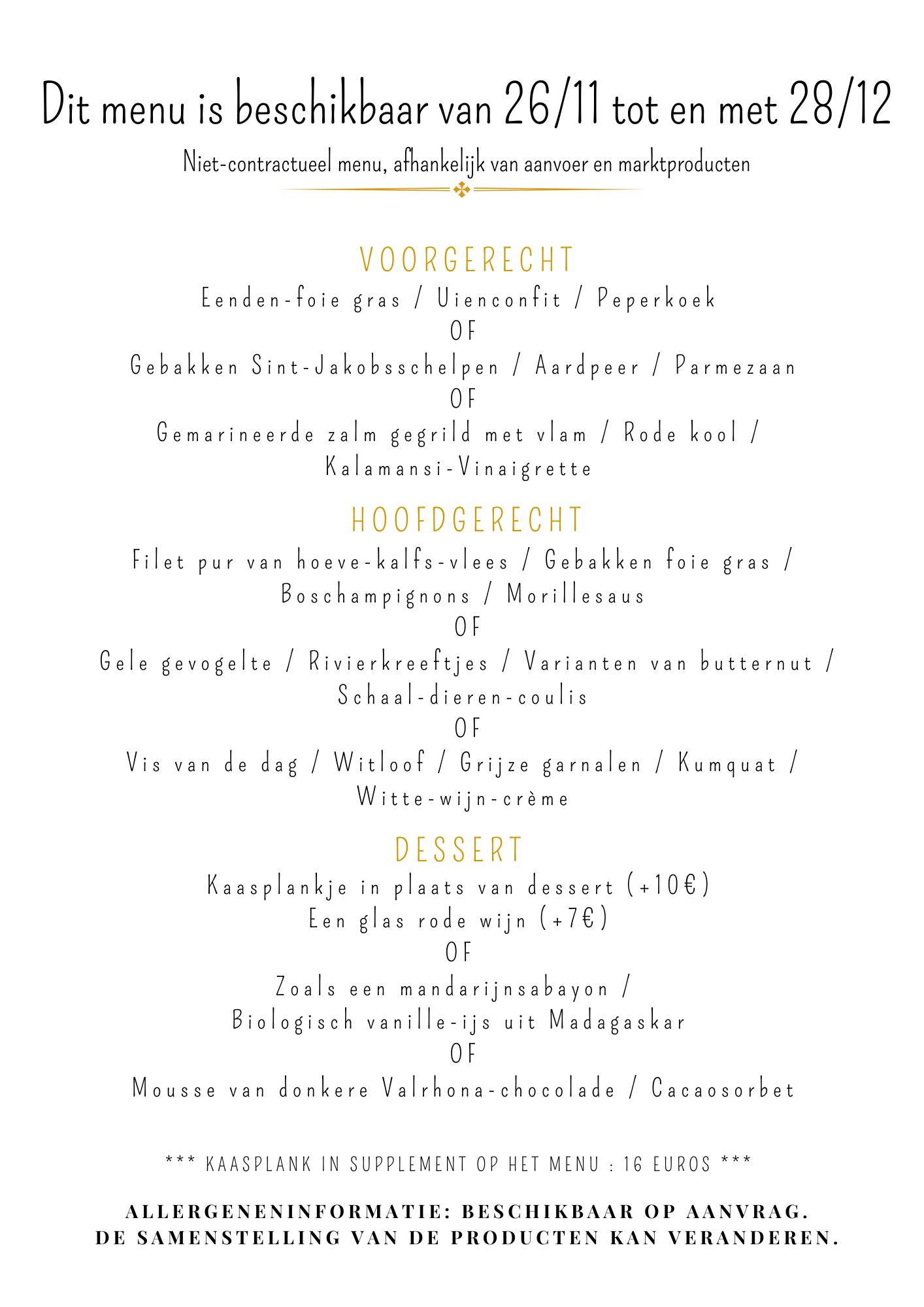 • 2-gangenmenu (hoofdgerecht – dessert) voor € 38